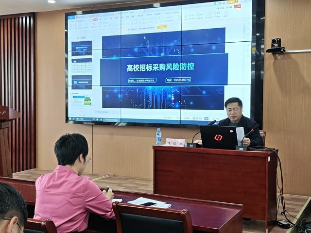 培训会上,汪宗亮主任以“高校招标采购风险防控”为主题,结合多年招采管理及审计经验,从预算申报、采购需求制定、采购实施等十个方面环节风险防控,对高校招标采购风险防控进行了详细讲解。重点强调了高校采购中常见的预算编制不科学、供应商资质审核不严、合同履行监管缺位等风险隐患,并针对性提出“制度完善、流程规范、权责明晰、监督闭环”的防控路径。同时,汪宗亮主任分享了江西财经大学招标采购廉政风险防控办法和招标采购内部控制管理制度,阐释了内部控制机制在防范廉政风险中的关键作用,为学院优化采购管理体系提供了宝贵经验。